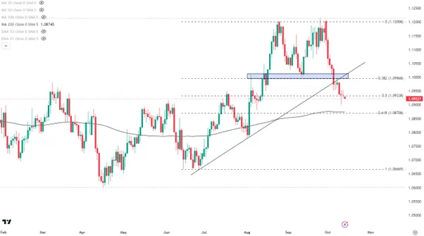 高于预期的数值将进一步排除11月50个基点降息的可能性,从而继续利好美元指数。反之,若数据不及预期甚至转为负增长,或打压美元反弹势头并利好黄金。