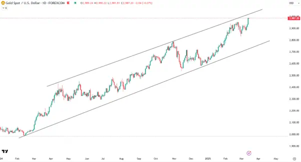 可能导致金价短线调整的因素包括五浪上涨的终结和获利了结,关税和地缘风险显著降温,又或是发生全球性的恐慌情绪导致“抛售一切”的重演。