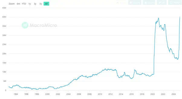 结合黄金的趋势和当前市场情绪来看,冲击3000美元似乎只是时间问题。各大金融机构今年较早时候就开始纷纷上调黄金在2025年的价格预测,其中麦格理集团在最新的报告中预测今年三季度金价最高将达到3500美元。若以美国M2货币供应量作为参考,金价甚至仍处于历史较低水平。