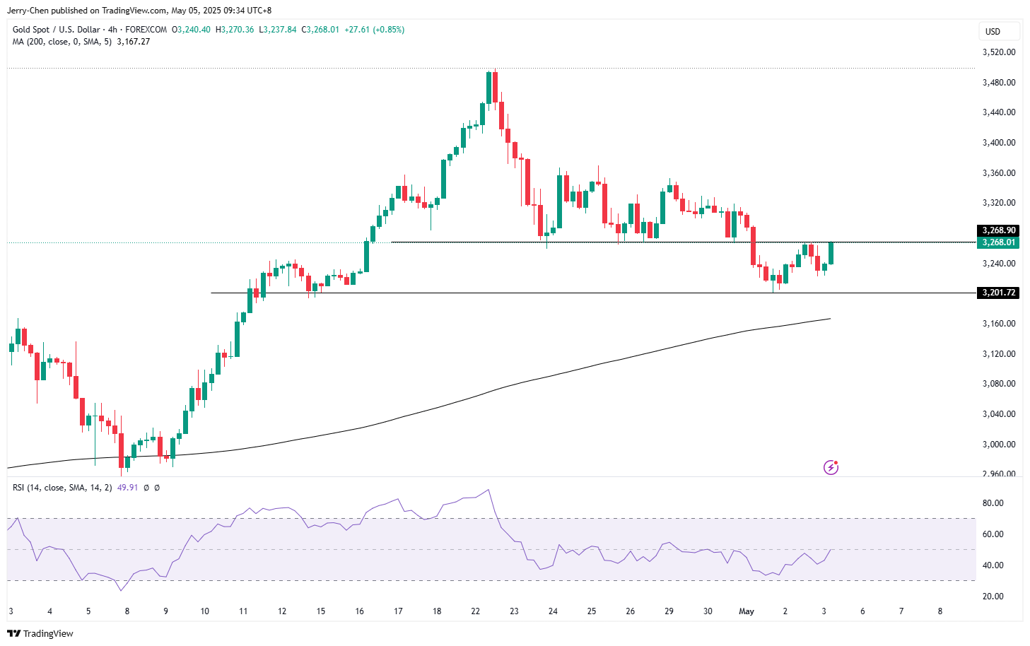 不过从4小时级别来看,3200一线提供了关键支撑,上方初步阻力在3270附近,若能顺利突破短线有望再次冲击3300关口。反之,金价可能在3200-3270区域震荡运行。
