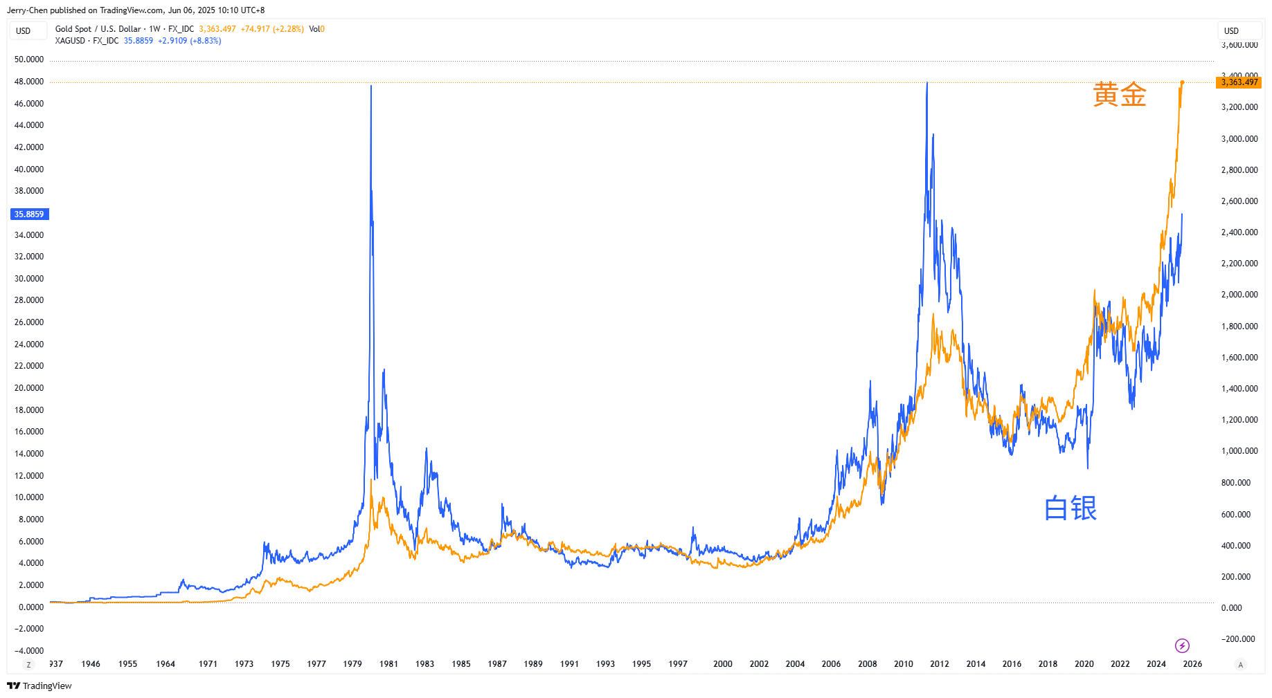 除了消息面外,周四最令人意外的是白银的再次爆发,银价上涨3.3%一举突破关键的35美元关口打开了新的上涨空间。白银是否会就此开启补涨行情?